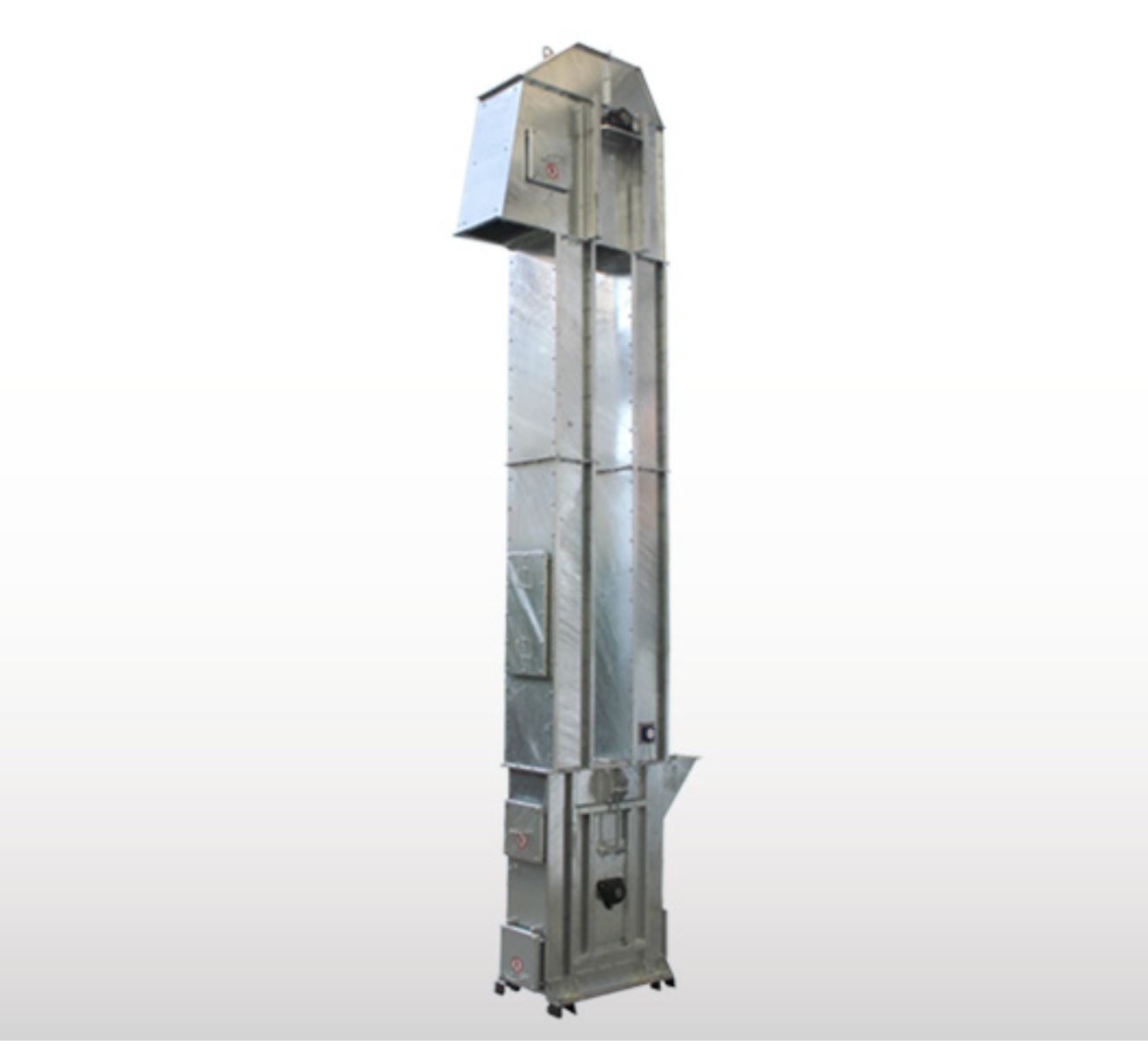 Material is introduced into a loading hopper which is included in the foot section. From there material is continuously picked up by appropriately shaped buckets which are fixed at an equal distance to an endless belt that rotates around a foot and a head roller wheel. The buckets are discharged through an outlet spout in the head section by centrifugal force after having passed the upper roller wheel. EHN Bucket Elevators are used in material handling and storage plants, as well as in different types of material processing plants.