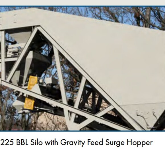 • Cement Storage: 900 ft3, 225 BBL., 42.3 T. The surge hopper holds approx. two batches of cement, re-supplied by two 6” dia., 7.5 HP direct drive screws