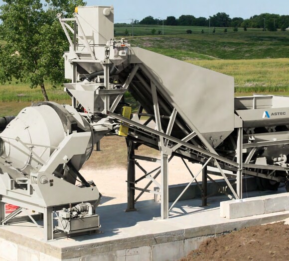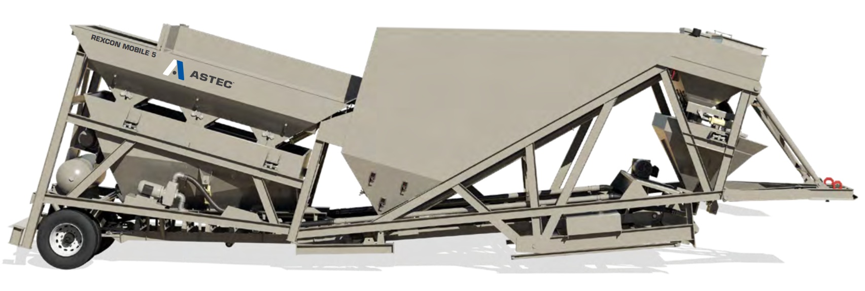 The mobile batch plant is ideal for remote locations and frequent moves. Future central mix capability offers higher productivity. The telescoping fifth wheel and hinged columns allow the plant to be erected with only a